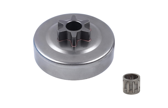 Чашка сцепления с ведущей звездочкой для бензопилы Штиль 180, 170; аналог STIHL 11306479400. Монолитная конструкция, характеристики цепного колеса: шаг 3/8 дюйма, шесть зубьев. В комплект детали входит игольчатый подшипник. Страна производства - Китай, бренд IGP.